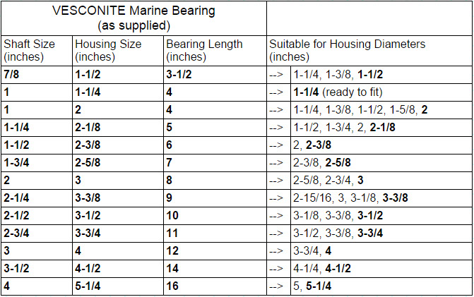 Easy removal of Vesconite bearings. Since no electrolytic carrion occurs with Vesconite, they do not seize like metallic bearings. Nor will you be spending hours trying to cut, hammer, or burn bearing out like has to be done with laminated bearings.