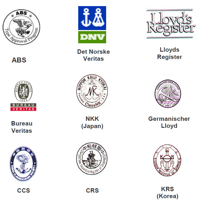 American Bureau of Shipping (ABS) approved. As well as Lloyd's and many other Classification Societies worldwide.